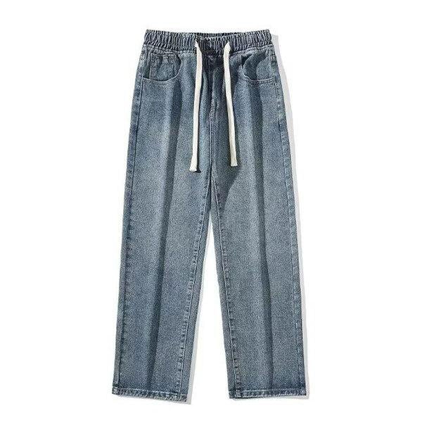 メンズ カジュアル デニム ジーンズ ストレートパンツ ロングパンツ ボトムス パンツ ポケット付 ウエストゴム ストリート系 シ...