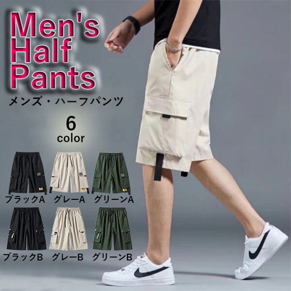 メンズ ハーフパンツ ウェストゴム サイドポケット付き 五分丈 ゆったり カジュアルスタイル ストリートファッション