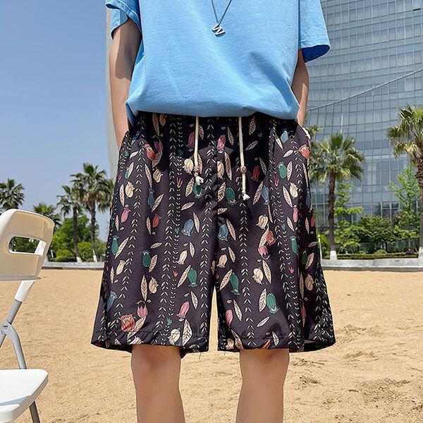 メンズ カジュアル サーフパンツ ハーフパンツ ショートパンツ 柄 プリント パンツ 半ズボン ルームウェア ゆったり アイスシル...