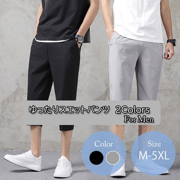 【即納】メンズ ボトムス パンツ クロップドパンツ ポケット付き スウェットパンツ ゆったり 七分丈 ハーフパンツ カジュアルパン...