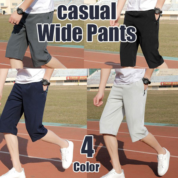 【即納】メンズ ボトムス パンツ クロップドパンツ 七分丈 ワイドパンツ ハーフパンツ 通気性 ゆったり 大きいサイズ 部屋着 カ...