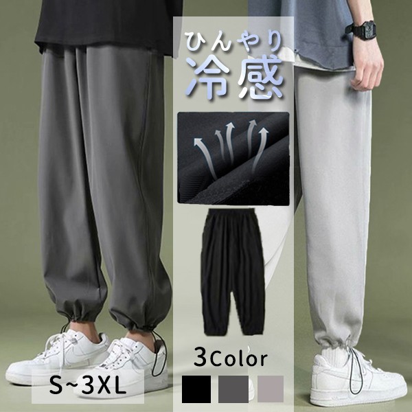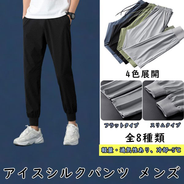 【即納】メンズ ボトムス パンツ ジョガーパンツ アイスシルク ひんやり 接触冷感仕様 スリム 大きいサイズ 速乾性 通気性 スト...