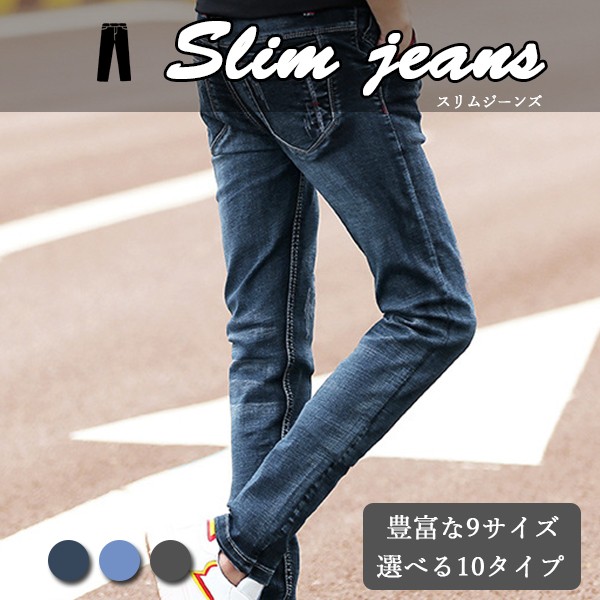 【即納】 メンズ スリムデニム ジーンズ ストレッチデニム レギュラー ボトムス スリム オールラウンド 美シルエット カジュアル...
