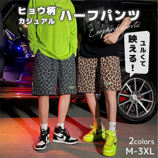 【即納】ハーフパンツ ヒョウ柄 カジュアル シルエット ゆったり 薄手 通気性 吸湿性 シンプル イージーパンツ ストリート ビー...