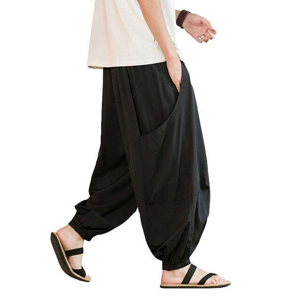メンズパンツ 3カラー 7サイズ ポリエステル素材 中華風デザイン ゆったり 動きやすい エスニックパンツ チャイナボタン おしゃ...