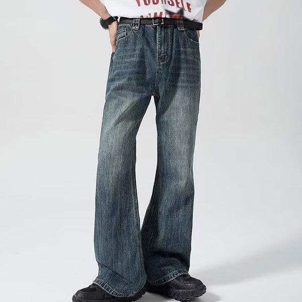 メンズ ウォッシュドデニムパンツ ハイウエスト ヴィンテージ風 デイリー パンツ フレアパンツ デニムパンツ カジュアルデニム レ...