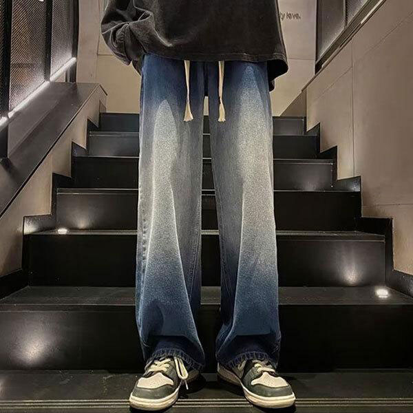 メンズ ウォッシュド ジーンズ グラデーション デニム ワイドパンツ ストレートパンツ ロングパンツ ルーズ カジュアル シルエッ...
