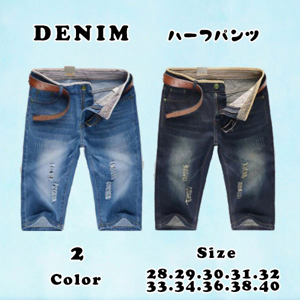 【即納】 メンズ ハーフパンツ ダメージ ジーンズ ショートパンツ 五分丈 ストリート系 お洒落 春 夏 送料無料
