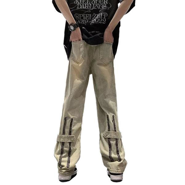メンズ デニム ジーンズ ストレートパンツ ロングパンツ バック ジッパー ルーズ シルエット ストリート系 韓国 お洒落 オール...