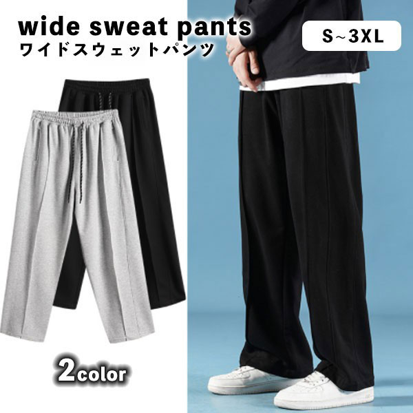【即納】 メンズ ワイド スウェットパンツ ウエストゴム 通気性 ゆったり リラックス カジュアル 快適 お洒落 春 夏