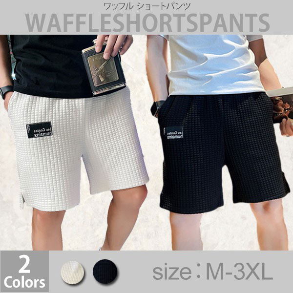 【即納】 ワッフル ショート ショート ハーフパンツ メンズ ルーズ スポーツ 無地 半ズボン 短パン 春 夏 シンプル お洒落