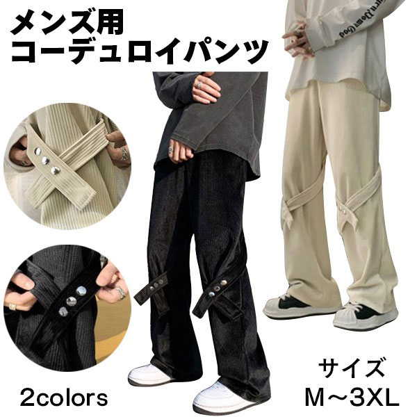 メンズ コーデュロイパンツ テーパード イージーパンツ ボトムス リラックス ボタン 留め外し 紐 伸縮性 快適 着心地 お洒落