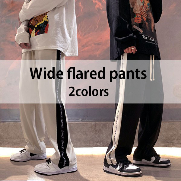 メンズ サイドライン ワイドフレアパンツ イージーパンツ ラインパンツ オーバーサイズ ゆったり シルエット ストリート 韓国風 ...
