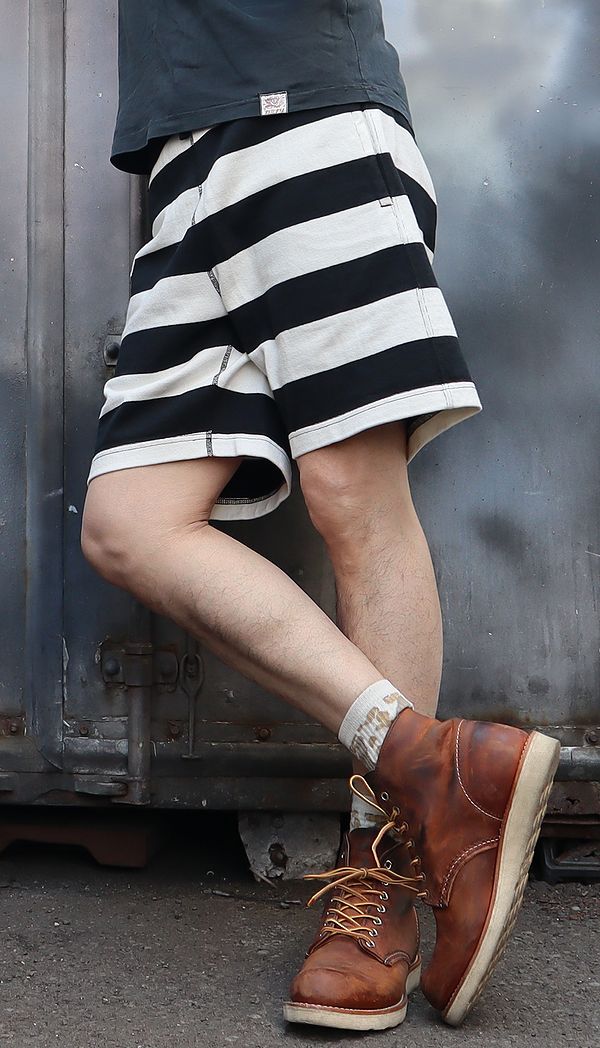 IRON HEART アイアンハート IHSW-51 ヘビーウェイト2インチボーダーショーツ ホワイト x ブラック