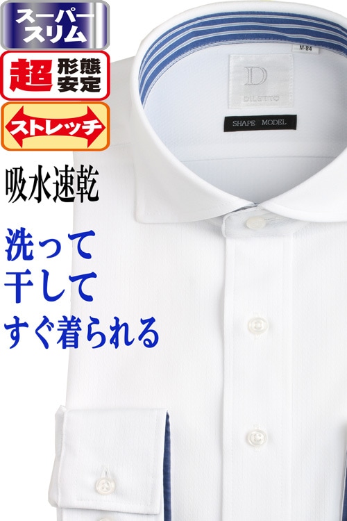 ワイシャツ メンズ 長袖 形態安定 スーパーノーアイロン ノーアイロン スーパースリム ショートレギュラーカラー ホワイト無地系 ...