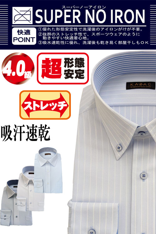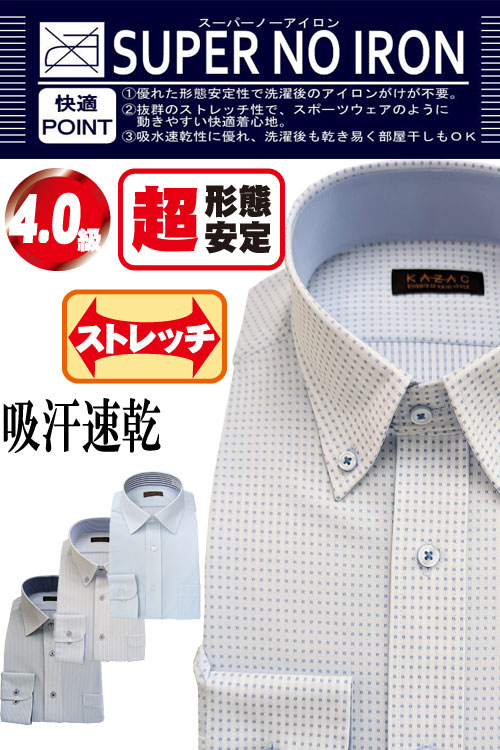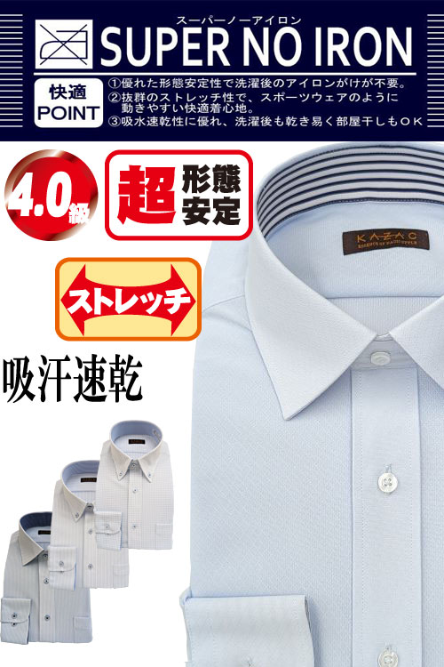 ワイシャツ メンズ 長袖 形態安定 スーパーノーアイロン ノーアイロン ベーシック セミワイドカラー ドビーストライプ ニット素材