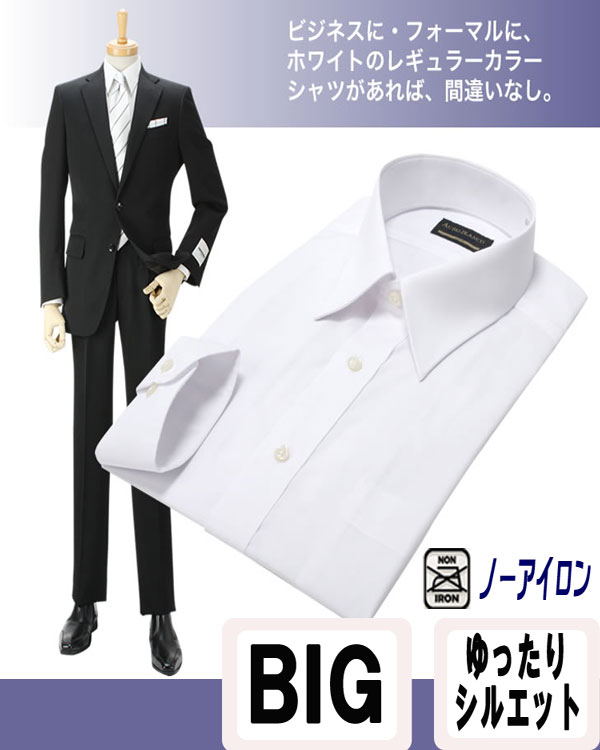 大きいワイシャツ メンズ 形態安定 白無地 レギュラーカラー 冠婚葬祭 結婚式 就活