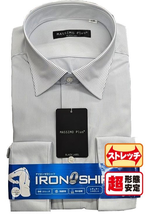 長袖ワイシャツ ワイドカラー ライトグレー ストライプ系 ストレッチ ダウXLA DOW XLA ポリオレフィン系弾性繊維