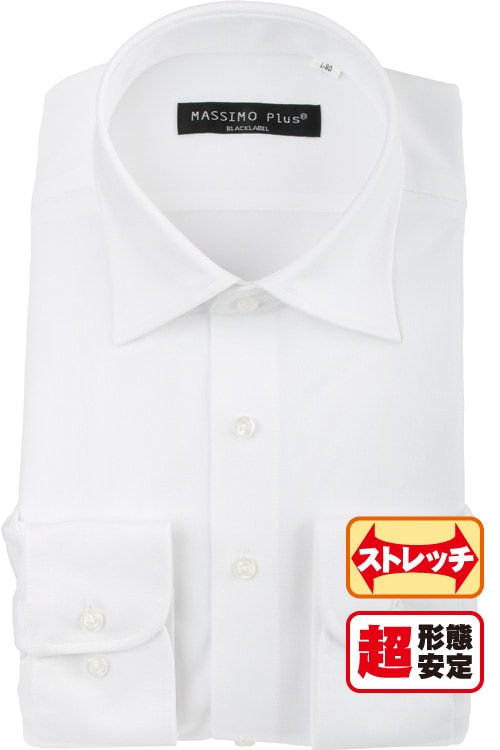 ワイシャツ メンズ 長袖 形態安定 ドレスシャツ アイロン0 ストレッチ ベーシック ワイドカラー ホワイト 無地