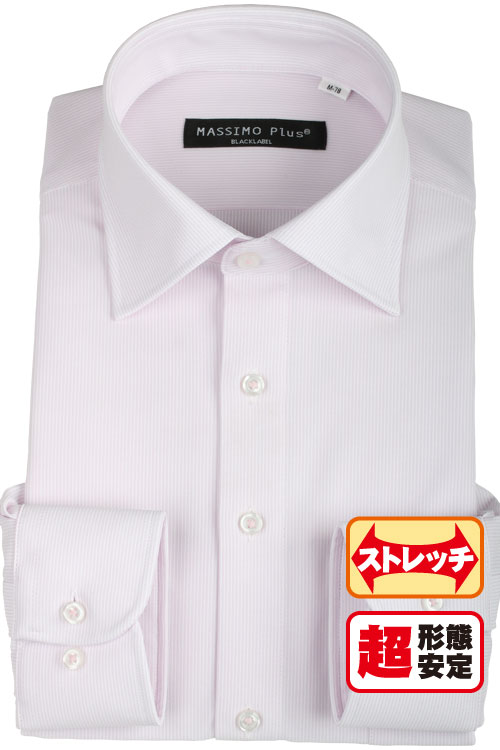 ワイシャツ メンズ 長袖 形態安定 ドレスシャツ ニットシャツ アイロン0 ストレッチ ベーシック セミワイドカラー ストライプ