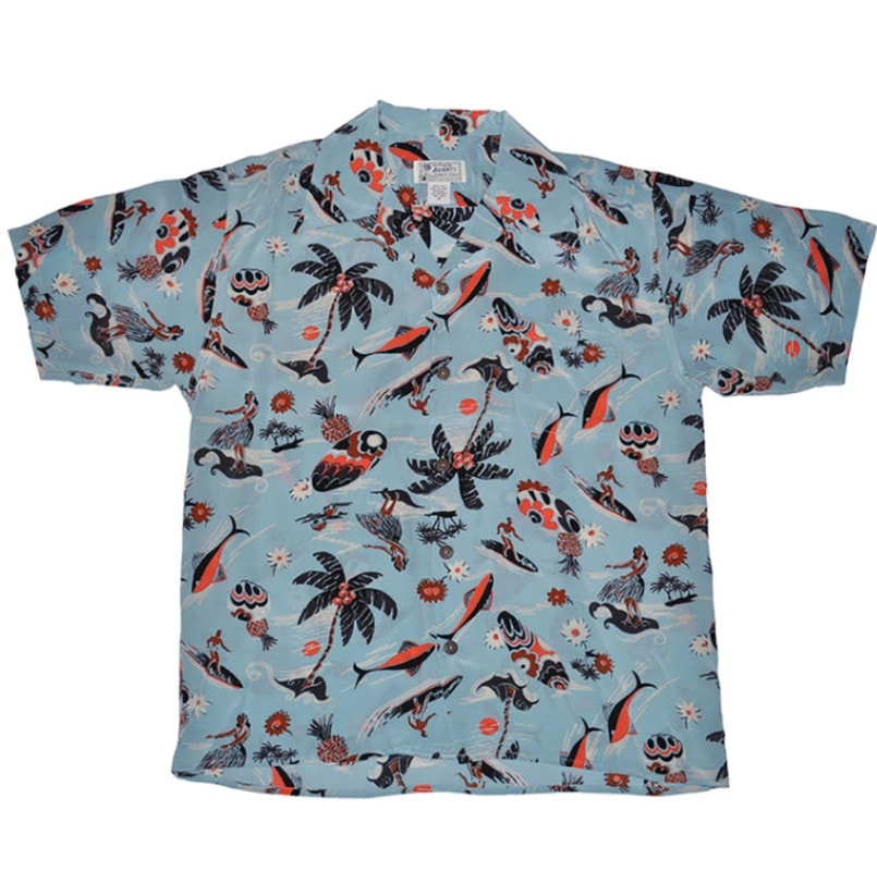 HAWAII アロハシャツ AVANTI アバンティ 1075 Surf N Hula Blue