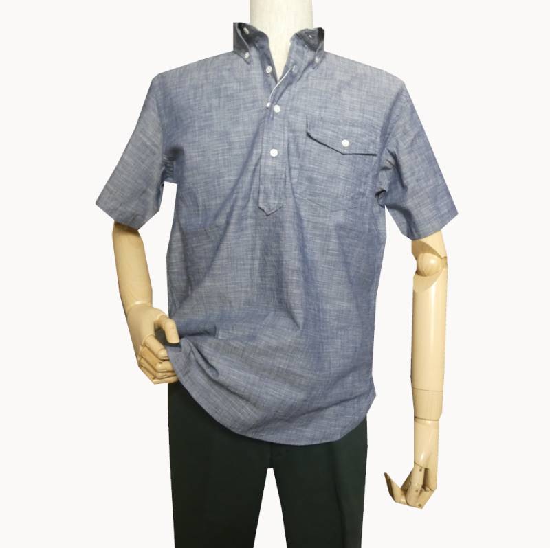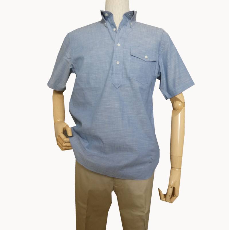 ジェイプレス (J.PRESS) アメリカン コットン ダンガリー プルオーバー 半袖シャツ 7073 サックスブルー XL
