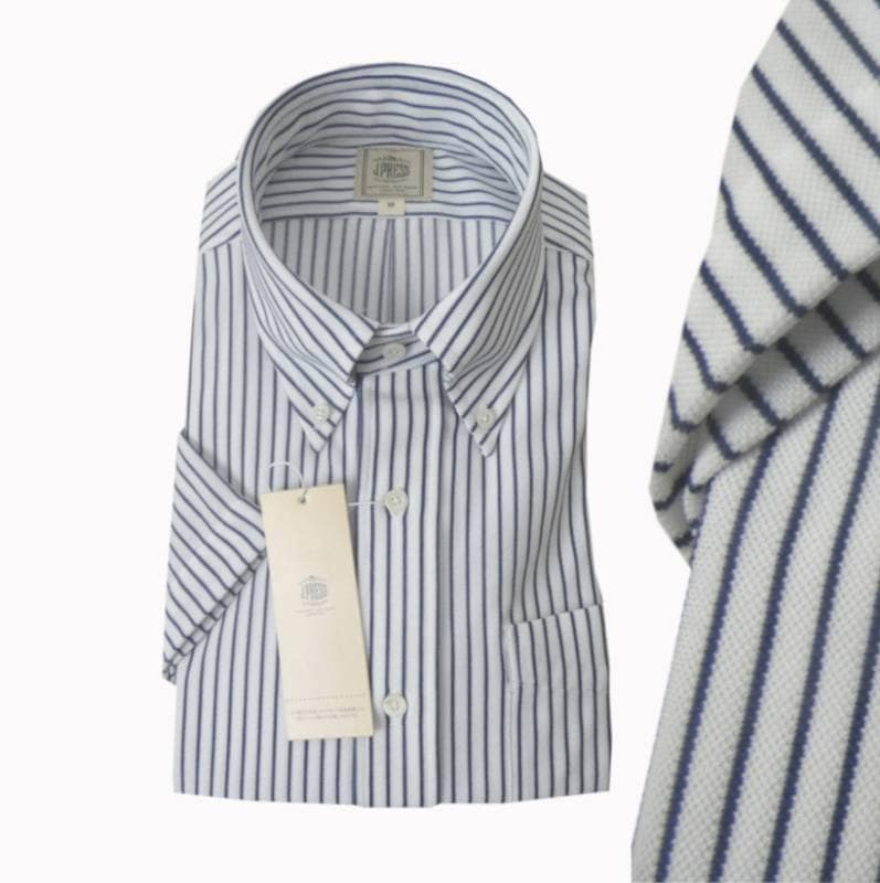 ジェイプレス (J.PRESS) ボタンダウン ジャージーシャツ メンズ 半袖シャツ ネイビーストライプ 1175 M
