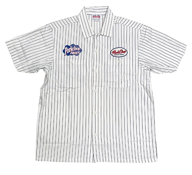 PORKCHOP ポークチョップ PAINT STRIPE WORK SHIRT ペイントストライプワークシャツ WHITE×BL...