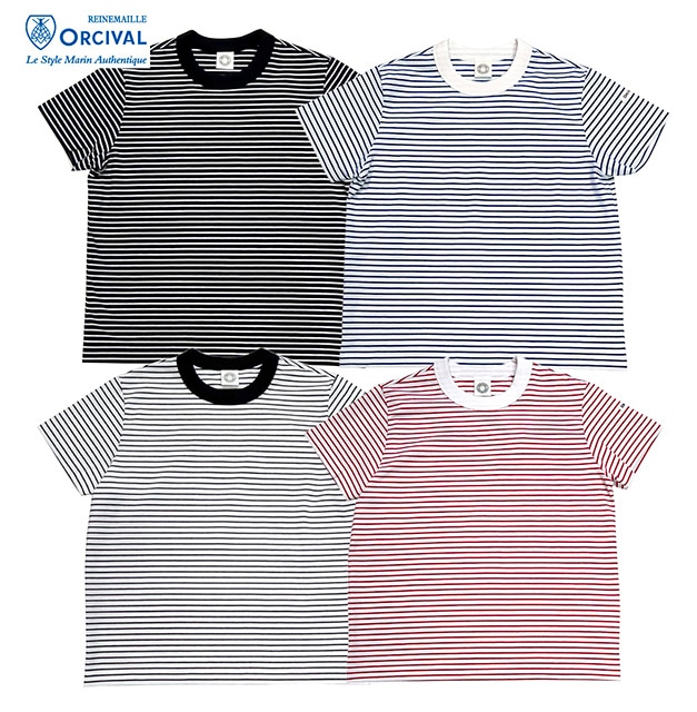 ORCIVAL オーシバル #0125 ボーダーベア天竺バインダーTシャツ ボーダー Tシャツ 半袖 3色(BLACK/WHITE...