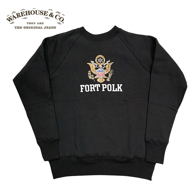 WAREHOUSE ウエアハウス Lot 409 FORT POLK クルー スウェット BLACK ブラック フロッキープリン...