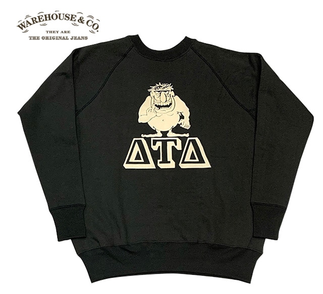 WAREHOUSE ウエアハウス Lot 409 △T△ クルー スウェット BLACK ブラック フロッキープリント MADE...