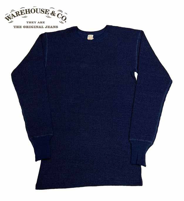 WAREHOUSE ウエアハウス 5911 INDIGO 4本針クルーネックワッフル長袖T CREW NECK WAFFLE L/...