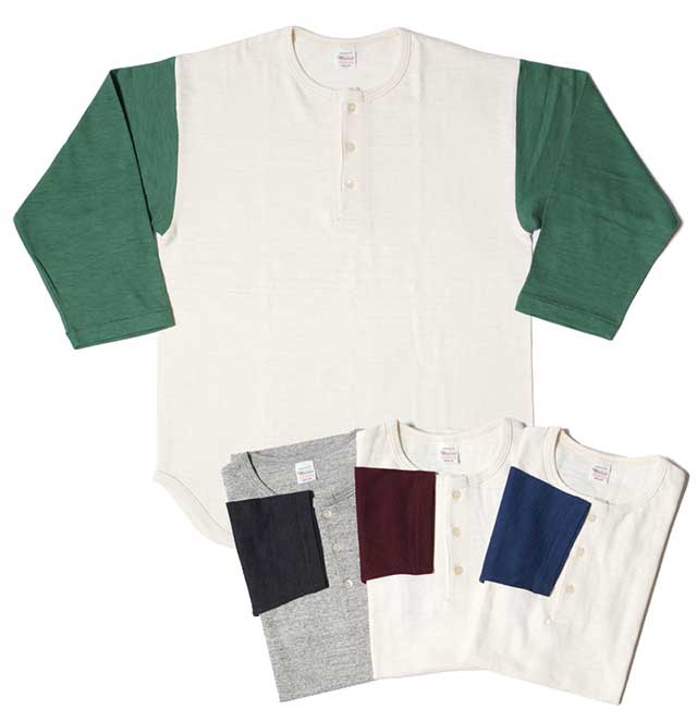 WAREHOUSE ウエアハウス Lot 4058 7分袖ベースボールT(ヘンリーネック)無地