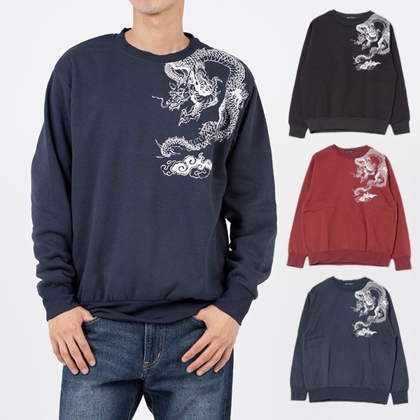 裏起毛プリントクルーネックトレーナー(龍プリント)