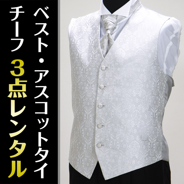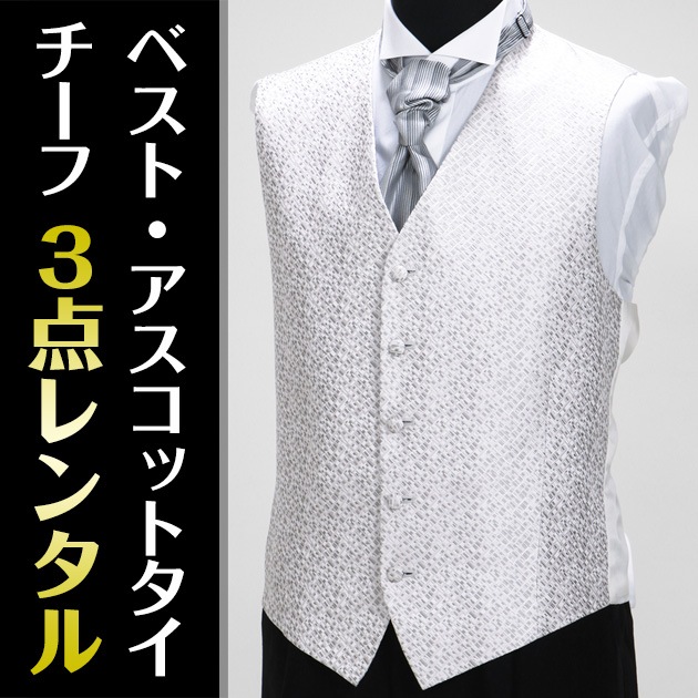 フォーマルベスト ホワイト ベスト タイ ポケットチーフ 3点セット v-026-3set