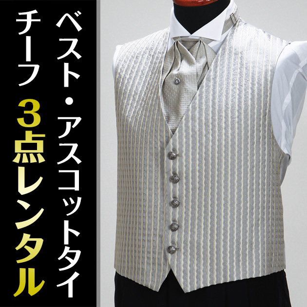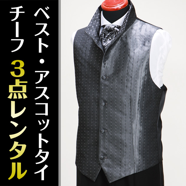 フォーマルベスト グレー ベスト タイ ポケットチーフ 3点セット v-102-3set