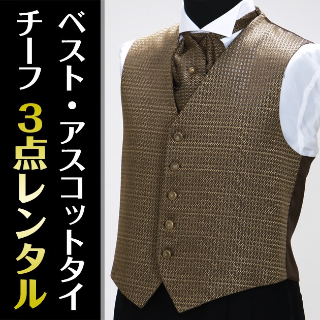 フォーマルベスト ブラウンゴールド ベスト タイ ポケットチーフ 3点セット v-025-3set