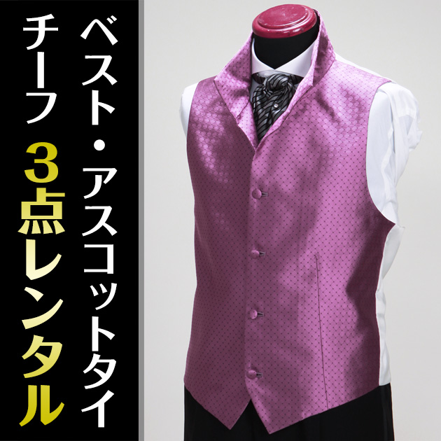 フォーマルベスト チェリーピンク ベスト タイ ポケットチーフ 3点セット v-101-3set
