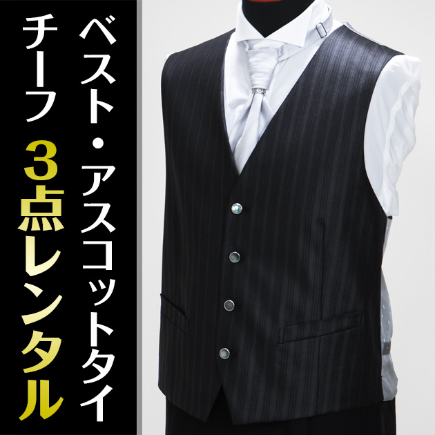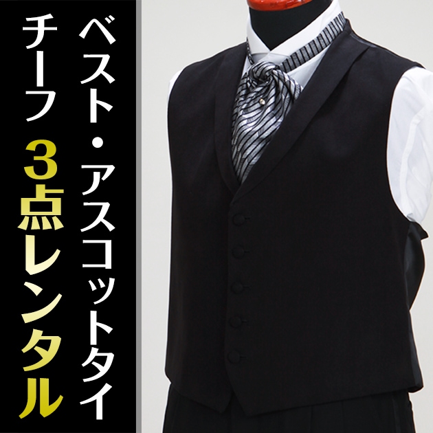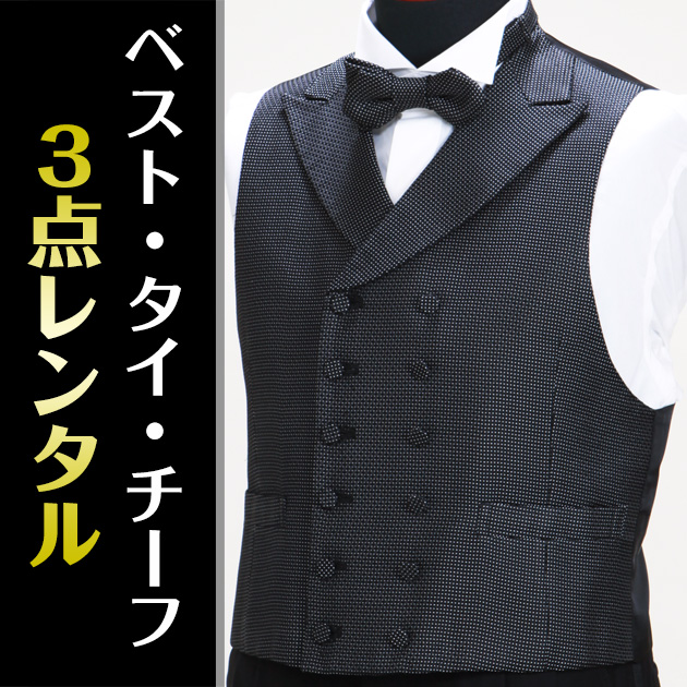 フォーマルベスト ブラック ベスト タイ ポケットチーフ 3点セット v-015-3set
