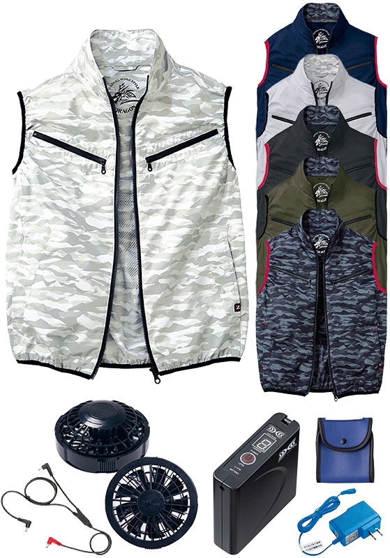 自重堂 Z-DRAGON(ジードラゴン) 空調服 ベスト パワーファン対応バッテリー&ワンタッチファン(グレー)セット 74240...