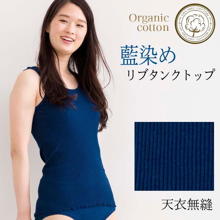 天衣無縫 藍染めby宝島染工(手染め)リブキャミソール(メール便使用で送料無料!)ベコオリジナル