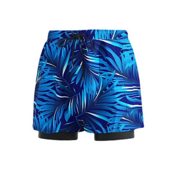 メンズ サマーリーフ柄 水着 インナーパンツ付き サーフパンツ 海パン ハーフパンツ 総柄 プリント スイムウェア 大きいサイズ ...