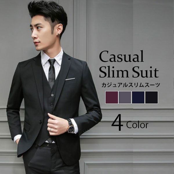 【セール】【即納】 フォーマル カジュアルスーツ スーツ メンズ スリム スリーピース 3点セット 無地 ベスト付き 細身 卒業式...