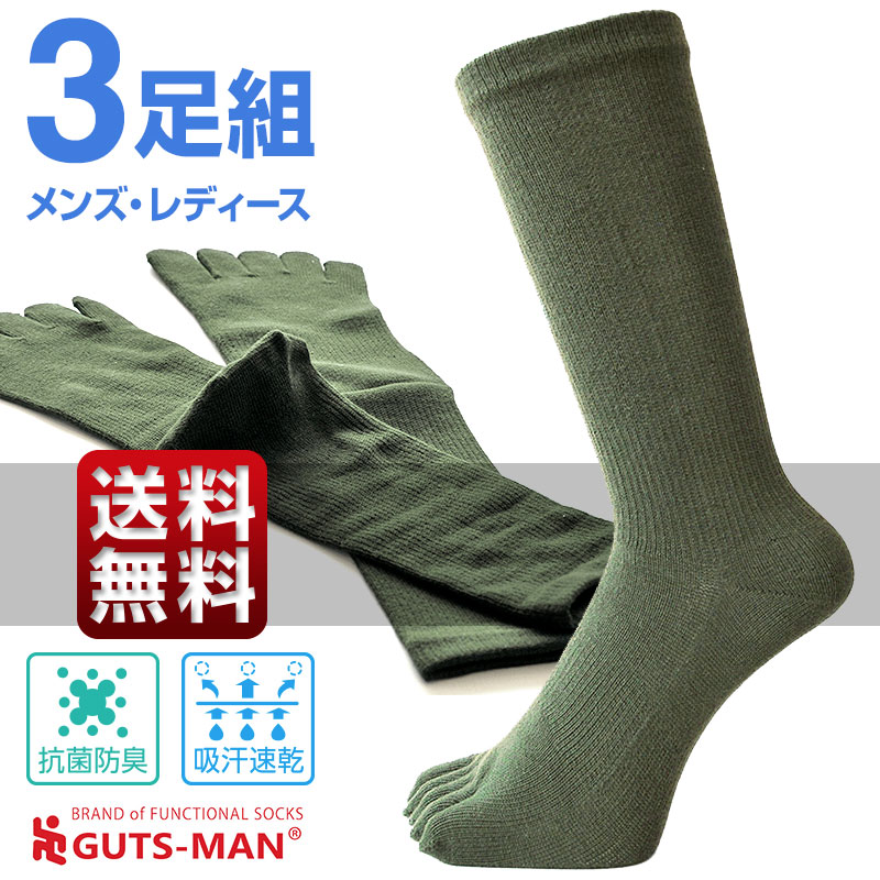 【日本製】 送料無料・3足組 抗菌防臭 五本指ソックス 23-29cm ガッツマン 巽繊維工業所 FE-02