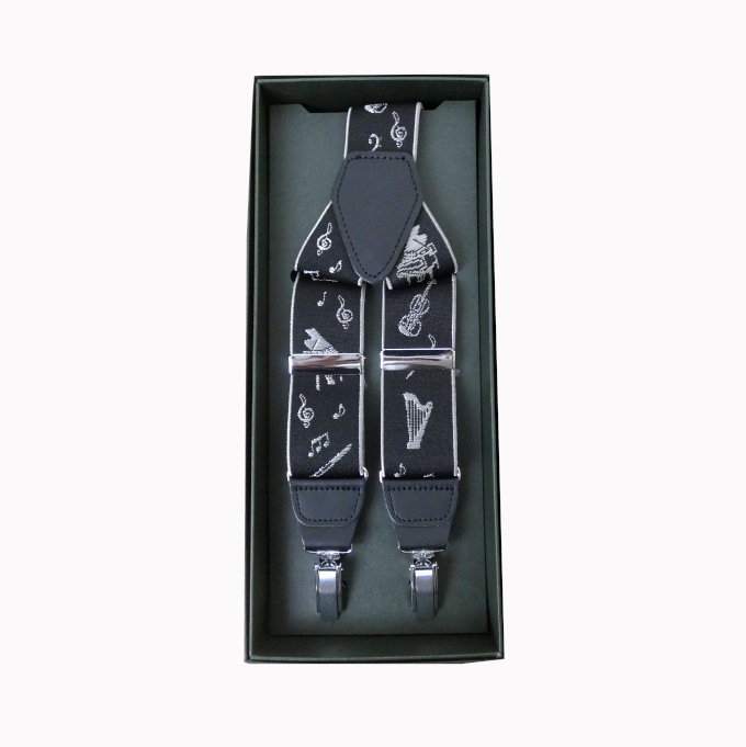 サスペンダー クリップ式 Y型 楽器 黒×シルバー A37 フリーサイズ