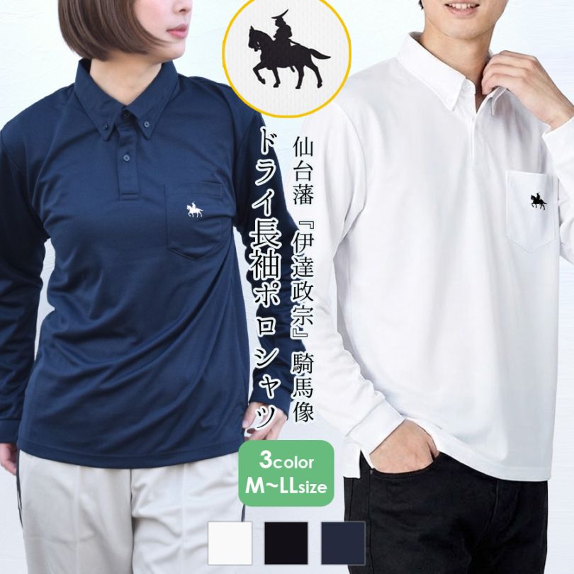 ポロシャツ Tシャツ 長袖 伊達政宗 レディース メンズ トップス ドライ ボタンダウン UVカット 【送料pt100】