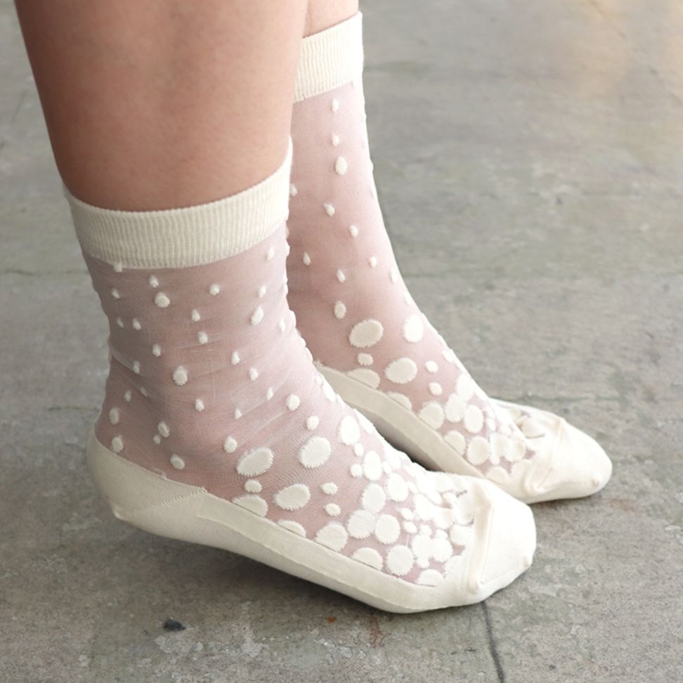 biollne (ビオルネ) オーガニックコットン大人のシアーソックス/ドット オフホワイト/グレー/ブラウン/ベージュ/ブラック...