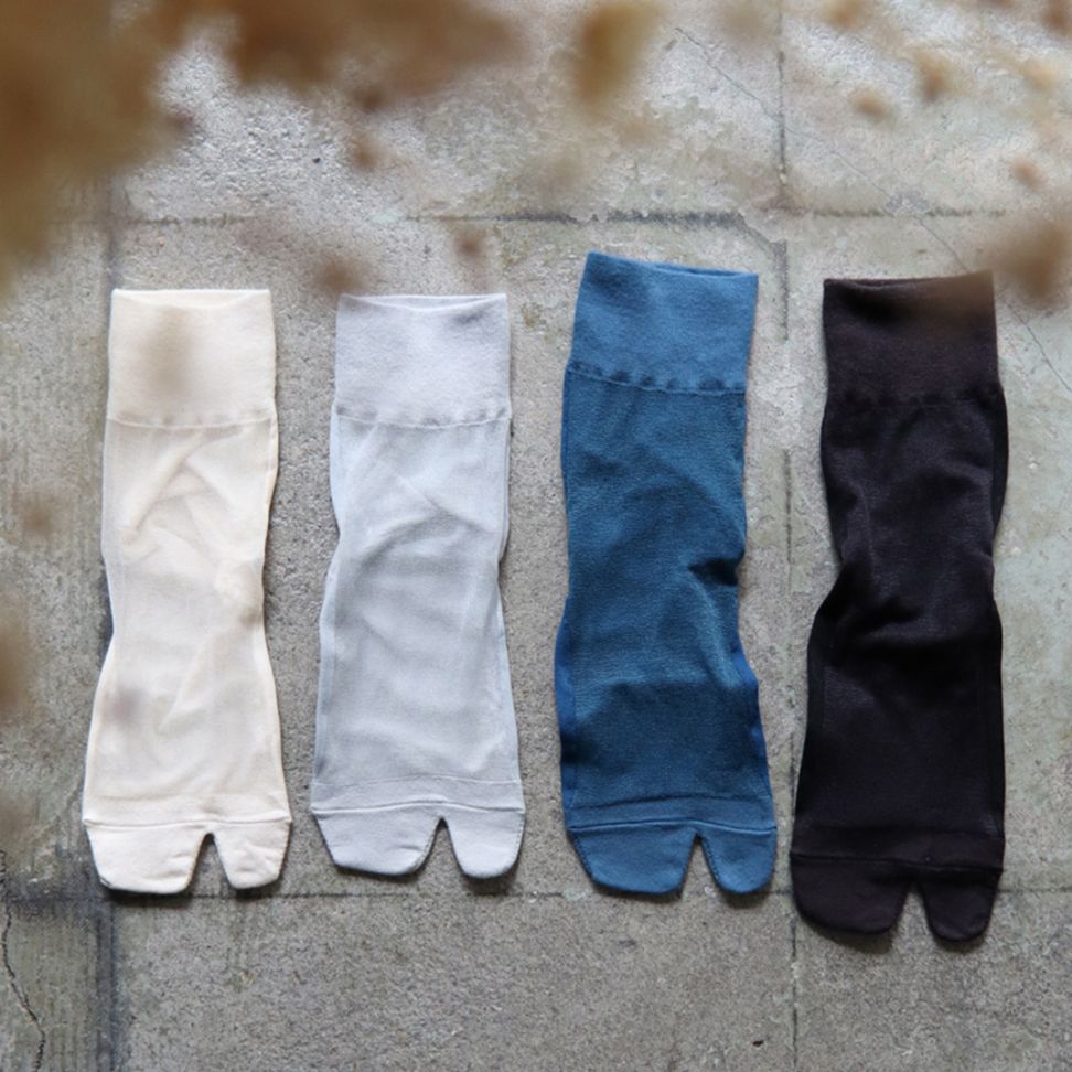 biollne (ビオルネ) オーガニックコットン大人のシアーソックス足袋型 チュラル /グレー/スモーキーブルー/ブラック 【メ...
