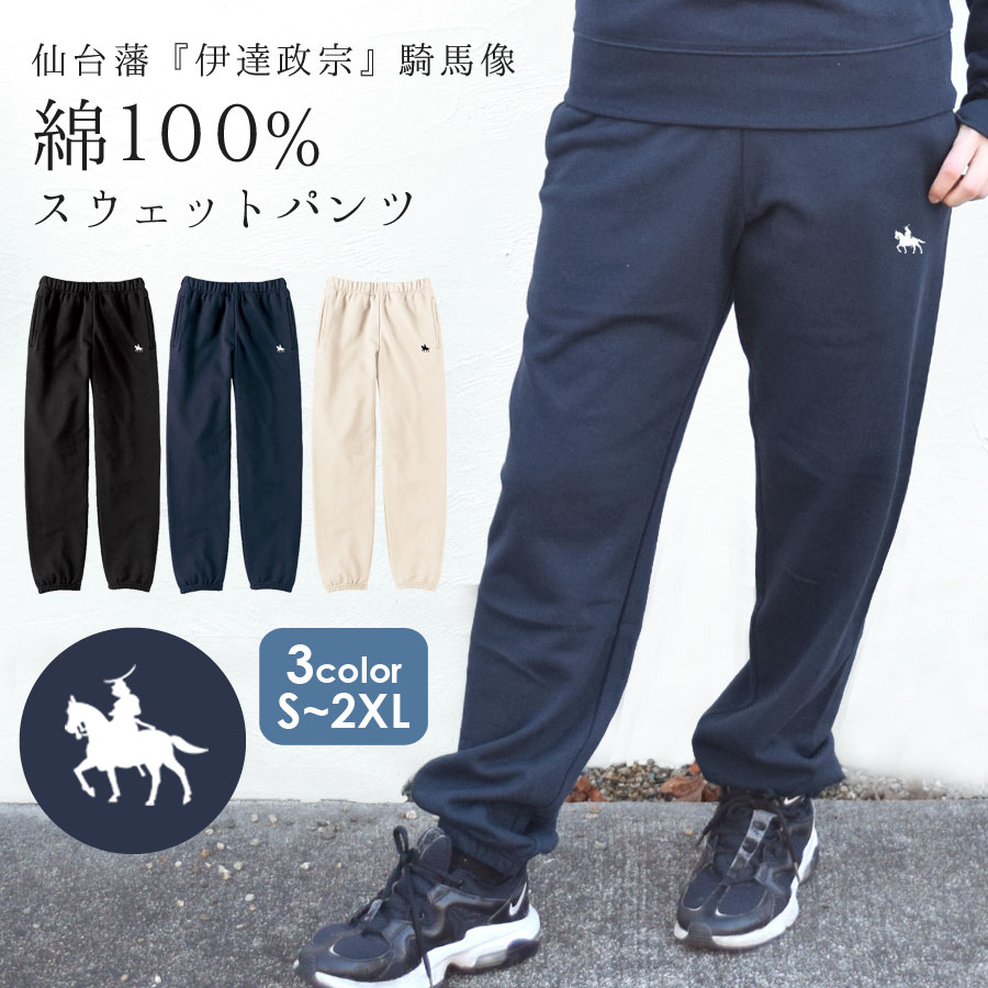 スウェットパンツ レディース メンズ 綿100 伊達政宗 ワンポイント プリント 部屋着 ダンス ボトムス 【送料pt100】