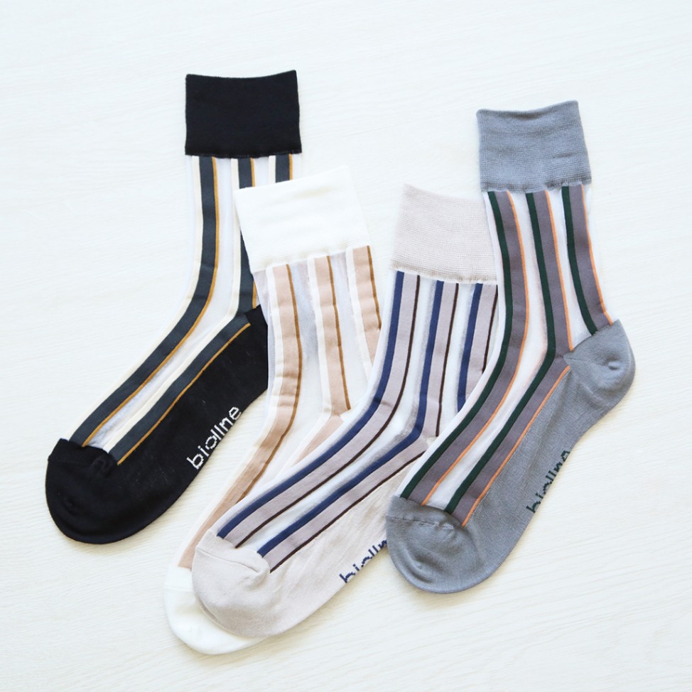 biollne (ビオルネ) オーガニックコットン大人のシアーソックス/ストライプ ナチュラル/グレー/ベージュ/ブラック 【メー...